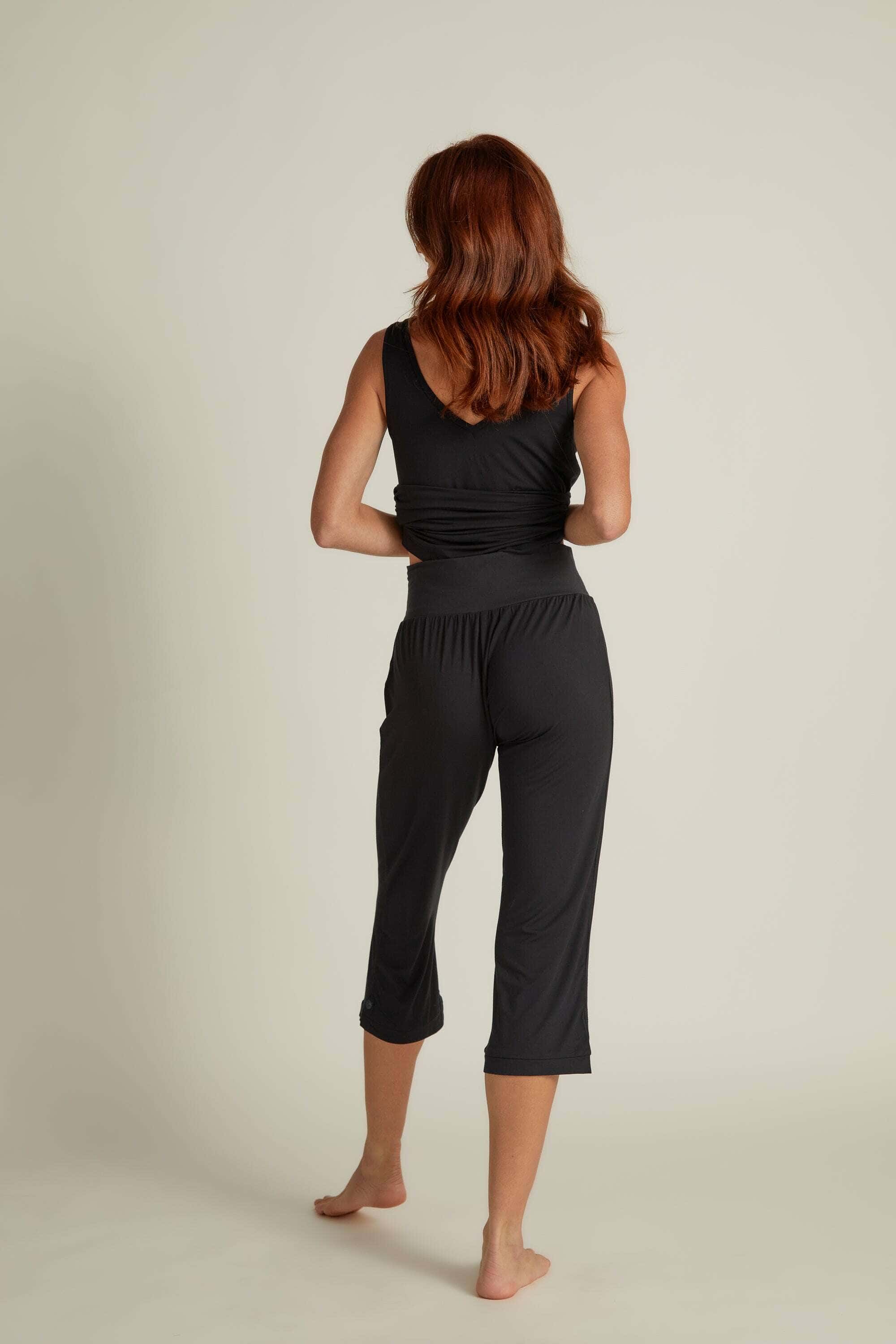 Our capri length pant offers the ease of a wide relaxed elastic waistband for a comfortable and smooth fit. Subtle cuff trim.