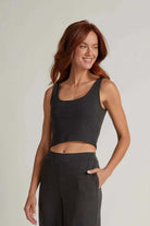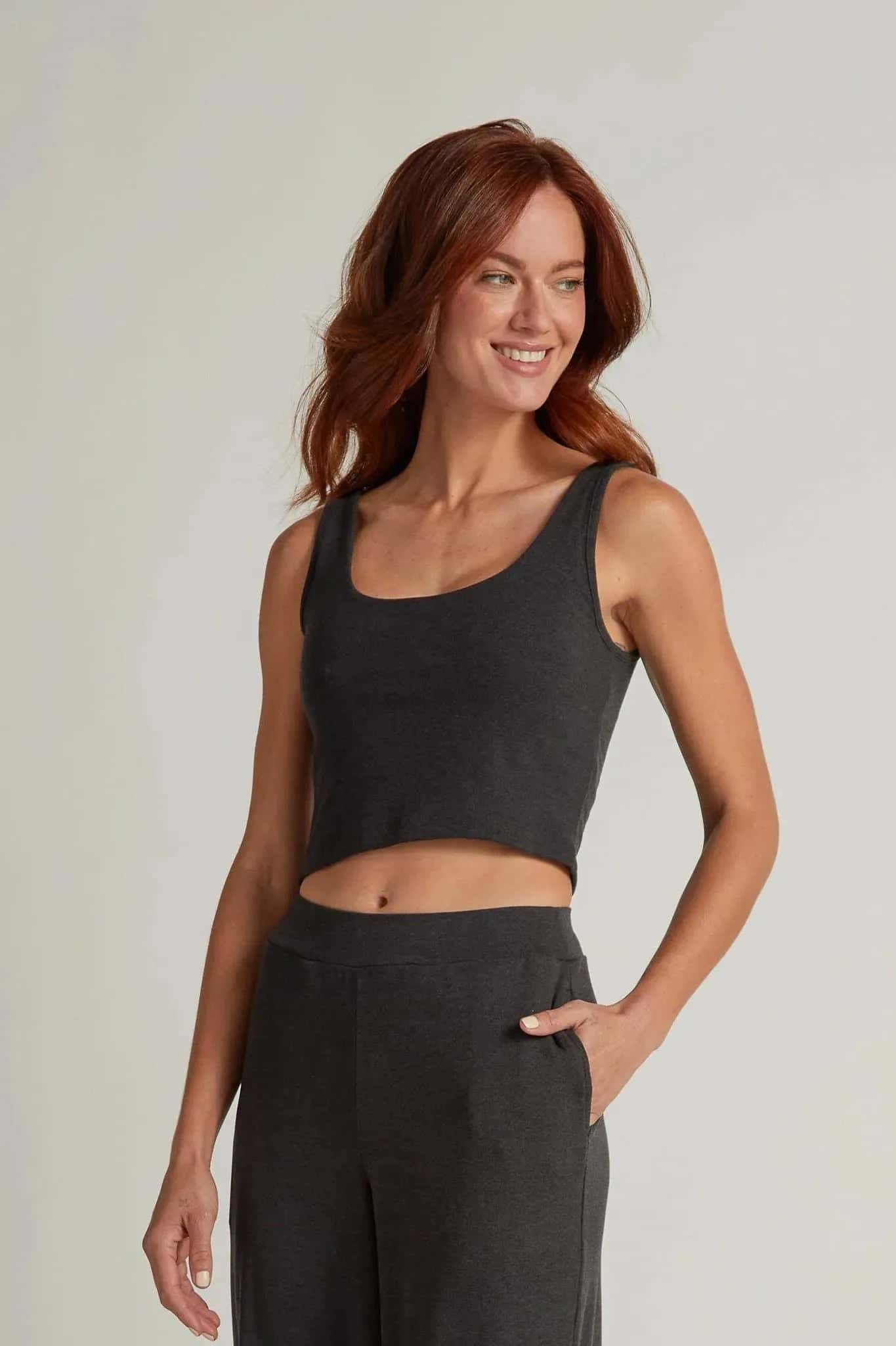 Rock the crop. With a supportive shelf bra, this elevated cropped tank balances the impulses of conceal and reveal with a slight glimpse of the midriff.